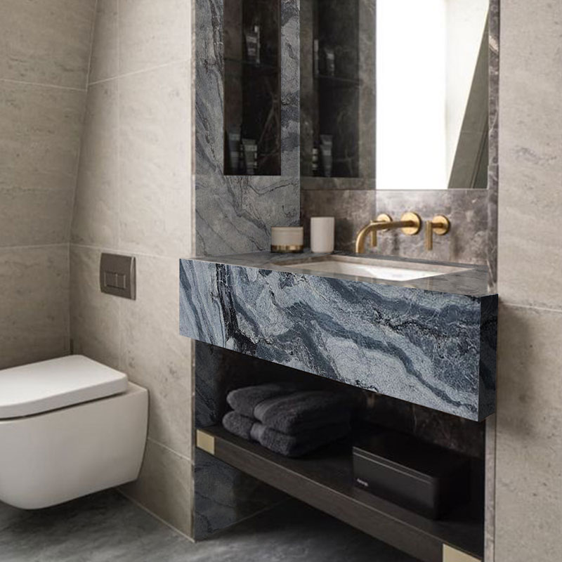 Often, marbles have a color that extends in the background of the surface. A lot like the name suggests, Cirrus has a darker grey theme covering it up. Additionally, marbles come with more veins that are extended all over the material. The veins in Cirrus marble, much like waves, go on in shades of white and grey throughout the stone. Moreover, over the edges, these veins break off their linearity and circle the stone. Also, these waved veins could bend and break off their expected route randomly. This feature adds to the beauty and charm of these natural stones.