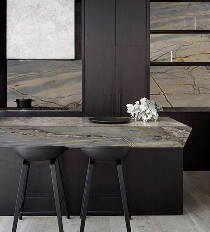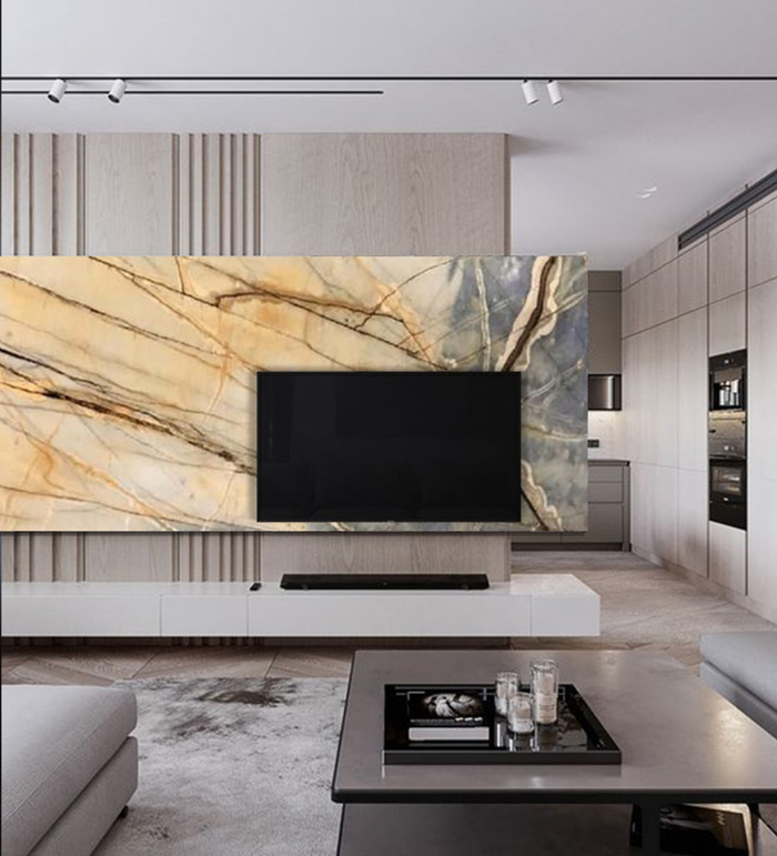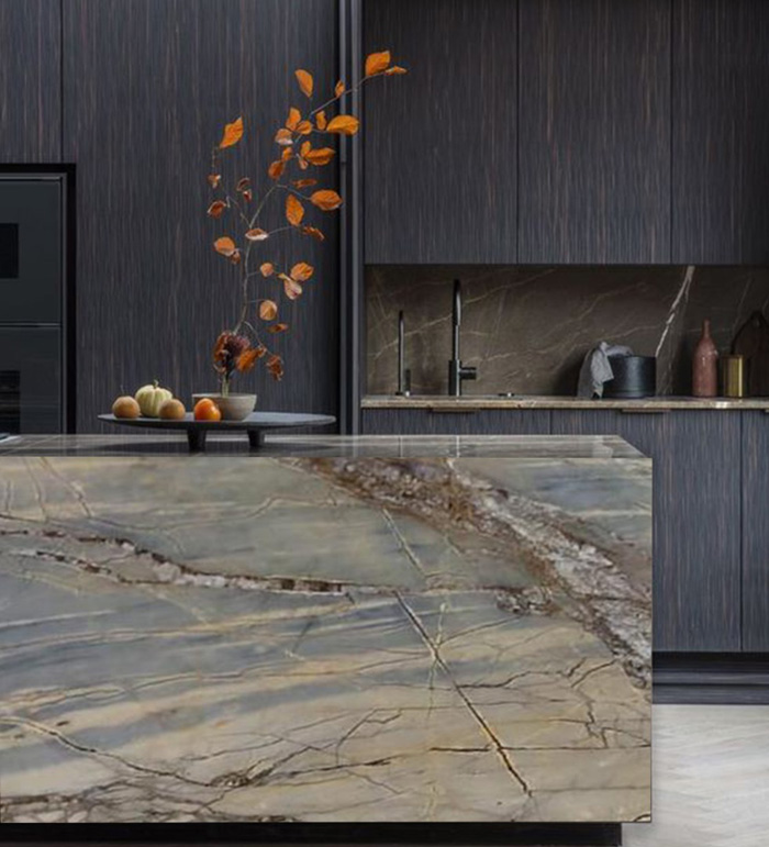 A stone that seems to have been beautifully painted by nature, and its core has cleverly taken advantage of the combination of warm and cold colors to decorate it. Ice Aurora is a new crystal marble with a complex color background that contains grey and white. It has solid and thick veins in golden and brown colors. There are even shades of blue in the background color, such as Maya and steel blue. The broad lines on the stone are also stunning, making Ice Aurora equal marble as the best stones in the world. A background of blue or white tones with wide and narrow veins of Ice Aurora is just reminiscent of the aurora borealis waiting to caress anyone’s eyes.