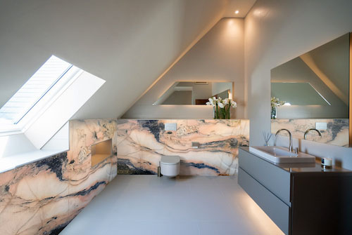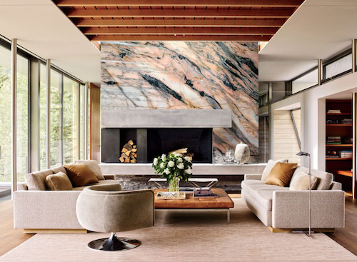 A book matched wall with Pink Nebula Marble or a fireplace whose bright flames, accompanied by the colors of this stone, dazzle every viewer’s eye. Cold and hot color combinations of Pink Nebula Marble make it an ideal choice for places such as dining rooms, bathrooms, and restrooms. The entrance to a luxury hotel or international conference hall with stone designs that evoke the dust of galaxies and supernovae can be graceful.